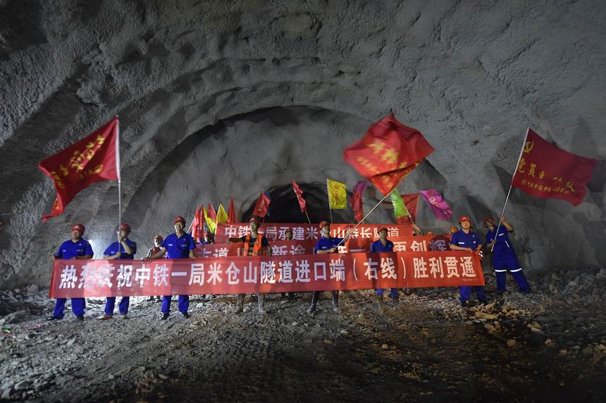6月25日,我院設(shè)計的米倉山超特長隧道右洞成功貫通。該隧道位于G85銀川至昆明高速公路川陜交界位置,全長13.85km,建成通車后將成為西南地區(qū)最長的公路隧道,也是國內(nèi)獨頭掘進(jìn)最長、中部通風(fēng)豎井最深、通風(fēng)聯(lián)絡(luò)規(guī)模最大的公路隧道。針對該隧道瓦斯、硫化氫等有毒氣體和巖溶涌突水、高地應(yīng)力強(qiáng)烈?guī)r爆等不良地質(zhì)難題,我院提出了采用短段掘砌混合作業(yè)及單層模筑混凝土修建豎井的新工法,開發(fā)了融合微震預(yù)測、基于時間效應(yīng)的爆破應(yīng)力控制以及烈度與支護(hù)剛度相匹配的巖爆防治成套技術(shù),有效保障了隧道順利推進(jìn)。該隧道的貫通為巴陜高速實現(xiàn)年內(nèi)全線貫通目標(biāo)奠定了堅實基礎(chǔ)。