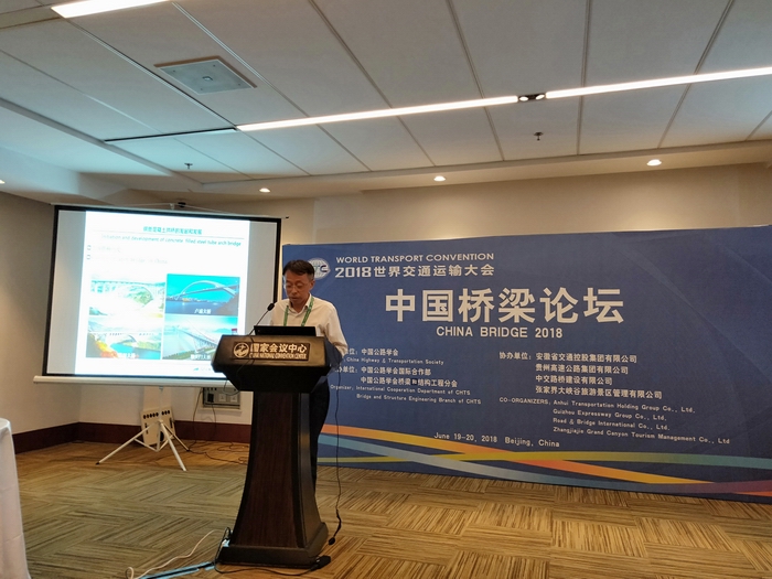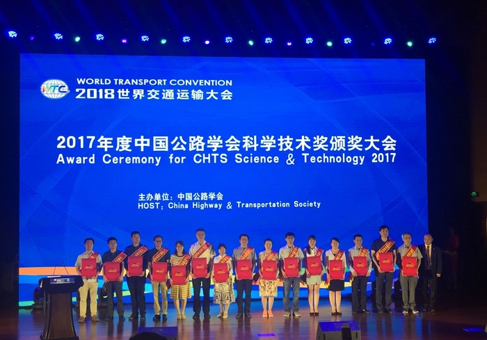 大會期間舉行了2017年度中國公路學(xué)會科學(xué)技術(shù)獎頒獎大會。我院“高烈度地震峽谷區(qū)公路松散體邊坡穩(wěn)定性快速評估及防治對策研究”和“橋面鋪裝整平層復(fù)合強化技術(shù)及工程應(yīng)用研究”獲2017年度中國公路學(xué)會科學(xué)技術(shù)二等獎,“高速公路瓦斯隧道防治與施工管理研究”獲2017年度中國公路學(xué)會科學(xué)技術(shù)三等獎,副院長陳強代表我院上臺領(lǐng)獎。在“中國橋梁”主題論壇上,我院總工程師牟廷敏作了主題為《中國大跨徑鋼管混凝土鋼管拱橋的技術(shù)發(fā)展》的報告,全面系統(tǒng)地介紹了我院鋼管混凝土拱橋科技的發(fā)展歷程,反響強烈。此外,我院有11位技術(shù)人員的學(xué)術(shù)論文被大會收錄,部分人員在路基、環(huán)保、橋梁等專業(yè)論壇現(xiàn)場作技術(shù)分享。