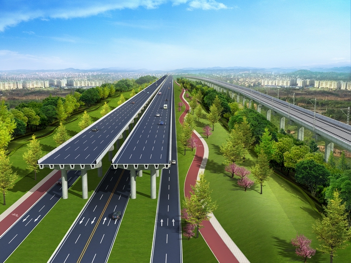 天府新區(qū)新機(jī)場(chǎng)快速通道分為主線K線以及天府支線A線,平面上與正在建設(shè)的成都天府國(guó)際機(jī)場(chǎng)高速公路同走廊,屬于新機(jī)場(chǎng)高速公路的底層道路。