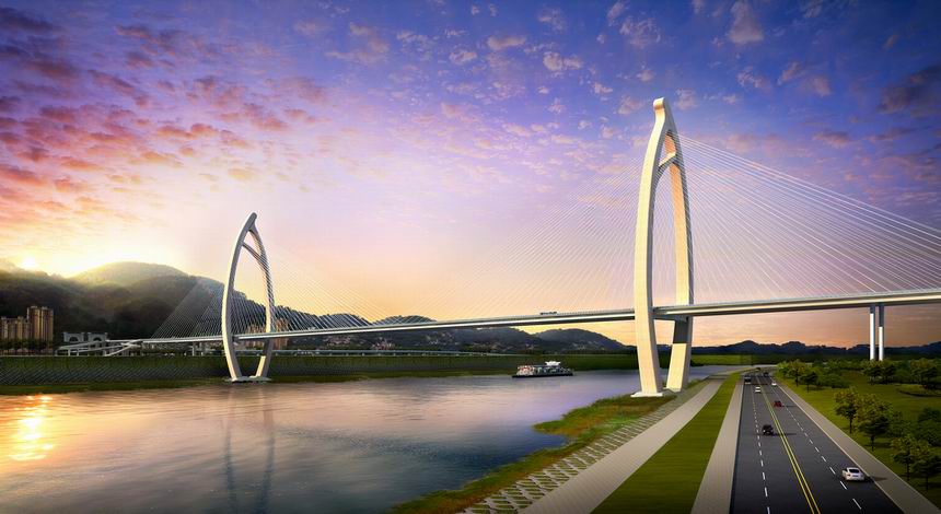 宜賓市鹽坪壩長江大橋連接宜賓市臨港經濟開發(fā)區(qū)和鹽坪壩組團,路線總體呈南北走向,是臨港經濟開發(fā)區(qū)與市區(qū)聯(lián)系的重要通道,建成后將極大緩解當?shù)厝嗣癯鲂械慕煌▔毫Α4髽虿捎弥骺?80米的混合式疊合梁斜拉橋,設計為雙向6車道,標準橋寬40米,索塔總高達183米,采用“江豚”造型,施工難度較大,是整個工程的關鍵節(jié)點。目前,鹽坪壩長江大橋已完成主橋承臺及樁基施工,正如火如荼進行索塔塔座施工,計劃今年完成索塔施工。