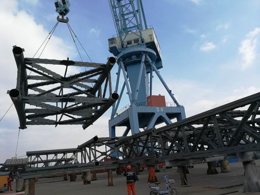 大橋拱圈節(jié)段由上海振華在其南通基地加工制造,并沿長(zhǎng)江船運(yùn)至橋位附近,航運(yùn)里程達(dá)2100公里。目前,用于架設(shè)主橋的扣塔施工進(jìn)度過(guò)半,邊拱拱肋已基本完成加工制造,并陸續(xù)運(yùn)達(dá)橋位,預(yù)計(jì)今年5月進(jìn)行邊拱的安裝。