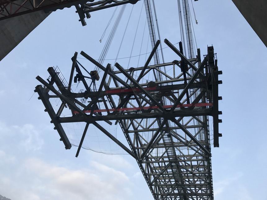 大橋全橋共57節(jié)鋼桁梁,其中單節(jié)段最大吊重為200.5噸,共使用近60萬套高強度螺栓,具有拼裝精度要求高、施工難度大的特點;從2017年9月26日開始吊裝,到2月6日勝利合龍,共歷時133天。