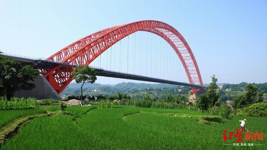 紅星新聞?dòng)浾攉@悉,合江長(zhǎng)江一橋建成于2013年,位于瀘州市合江縣境內(nèi),是成渝地區(qū)環(huán)線(xiàn)高速公路瀘渝段(瀘渝高速)的控制性工程之一。該橋全長(zhǎng)841米,雙向4車(chē)道,設(shè)計(jì)時(shí)速120公里。橋?qū)?8米、人行道寬3米。特別是主跨跨度達(dá)530米,是目前世界最大跨徑的鋼管混凝土拱橋。