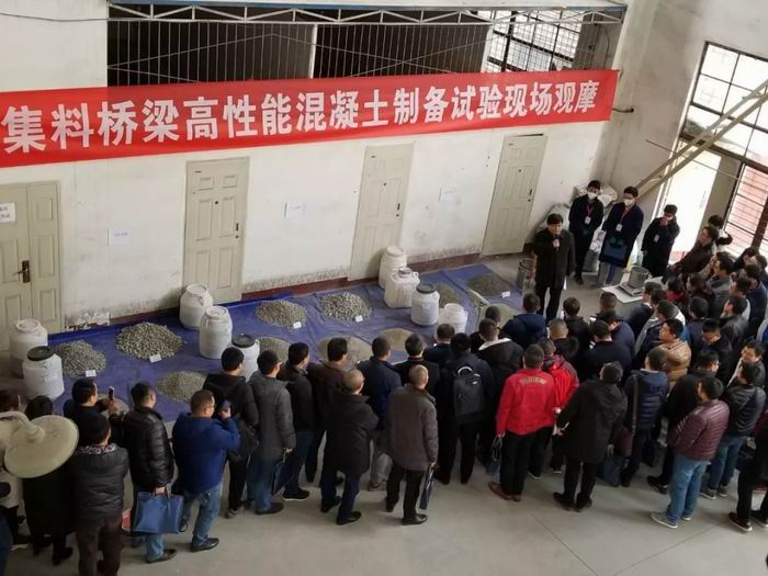 20日下午,參會人員觀摩了人工集料高性能混凝土制備試驗。