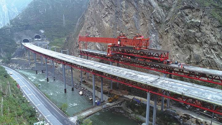 然而,探索不會停止。牟廷敏說,人的認識總是有限的,即使是干海子大橋,做完后也會發(fā)現(xiàn)有一些可以改進的地方。汶川克枯大橋在這樣的情況下應運而生,這座長6.43公里的大橋,全橋不需要模板。上部結構部分,根據(jù)橋成型后的樣式,分割成若干塊鋼管,由工廠統(tǒng)一定制生產,建設者只需現(xiàn)場“DIY”組裝,焊接、注入混凝土、安裝即可。