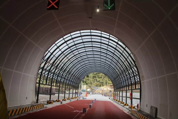 二、創(chuàng)新性提出“保暖內(nèi)衣+長衣袖式”隧道結(jié)構(gòu)綜合防凍技術(shù),并在隧道洞口設立了防雪透光棚,既保證隧道洞口防凍、防雪,又有效緩解了駕乘人員的“黑白洞”效應。