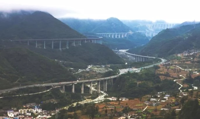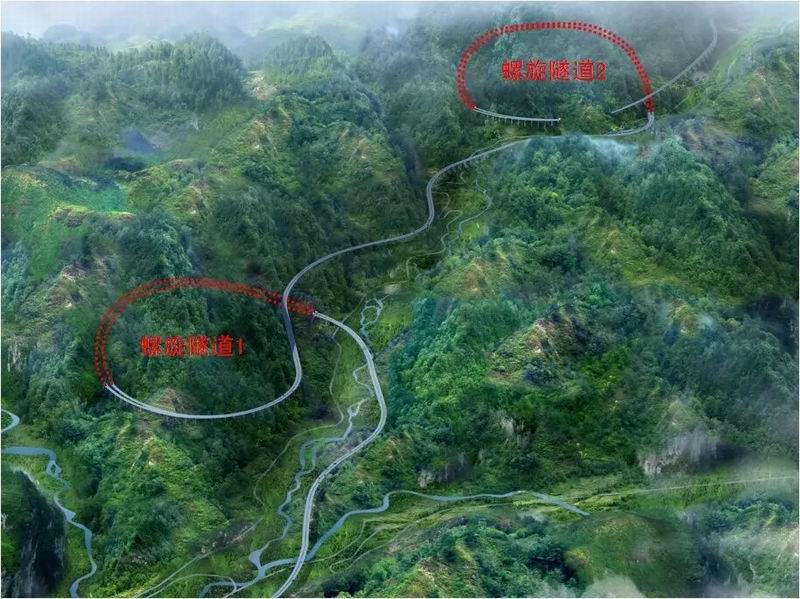 ▲雅西高速公路——具有長達51公里的全國最長連續(xù)大縱坡路段,克服高差1518米。在高速公路設(shè)計中首次采用集中連續(xù)雙螺旋展線技術(shù),解決了常規(guī)展線無法避開該區(qū)域內(nèi)大型活動斷裂帶、大型滑坡、不良氣候帶和自然保護區(qū)等環(huán)境障礙。