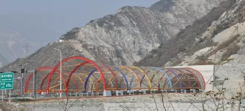 ▲《汶川地震災(zāi)后重建公路抗震減災(zāi)關(guān)鍵技術(shù)研究》成果:映汶高速公路橋上輕型鋼棚洞