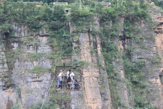 布拖縣馮家坪溜索(云南境稱之為“鸚哥溜索”)有“亞洲第一高溜”的稱號,是連接金沙江兩岸溜索中最險的一個,該溜索長470米離金沙江江面高度約260米,兩岸山勢險峻。“鸚哥溜索”是云南村民到達(dá)四川的主要通道,很多村落都由沿著巖壁上開鑿的羊腸小道連接。
