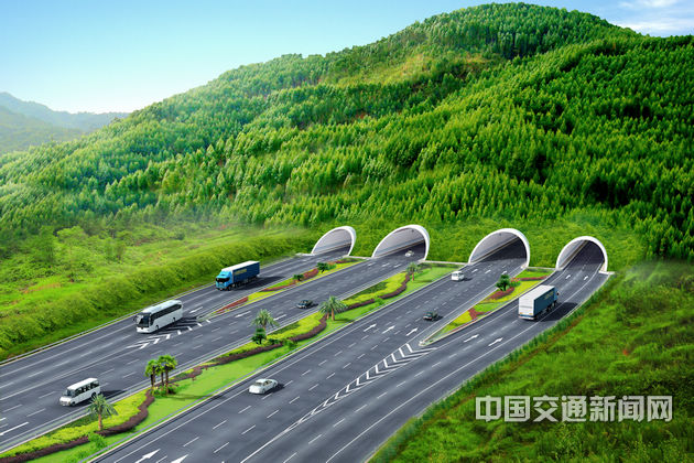 在綜合考慮設(shè)計(jì)、施工技術(shù)成熟程度及難度、運(yùn)營養(yǎng)護(hù)、防災(zāi)救援難度等因素后,該院最終確定了單向雙洞5車道的方案,這種設(shè)計(jì)比雙向4車道節(jié)省造價(jià)25%,在新建的8車道高速公路中,這種隧道設(shè)計(jì)是全國首創(chuàng)。