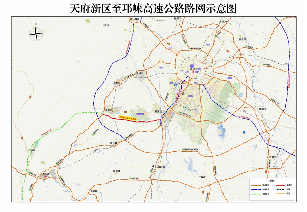 天邛高速起于新津縣鄧雙鎮(zhèn),接成樂高速擴容項目,經(jīng)新津縣永商鎮(zhèn)、邛崍市羊安鎮(zhèn)、固驛鎮(zhèn)、臨邛鎮(zhèn),止于邛崍市孔明鄉(xiāng),與邛名高速相接,路線全長約42公里,項目估算總投資約87億元,建設工期3年。