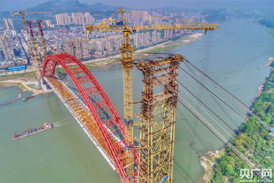 央廣網(wǎng)瀘州5月18日消息(記者賈宜超)5月18日,世界最大跨徑飛燕式鋼管混凝土系桿拱橋——四川合江長(zhǎng)江公路大橋主梁順利合龍,這為2020年底大橋建成通車奠定了堅(jiān)實(shí)基礎(chǔ)。大橋建成通車后,將為合江縣40余萬群眾密切往來提供便捷通道。