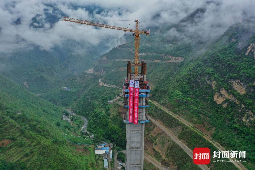 6月23日,金陽(yáng)河特大橋6號(hào)主墩順利封頂,196米的高度,也刷新了世界同類橋梁的橋墩高度。