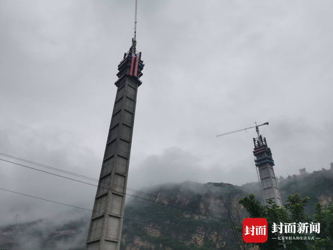 23日上午,封面新聞?dòng)浾咴诮痍?yáng)縣城看到,金陽(yáng)河特大橋佇立在金陽(yáng)河谷中央,非常壯觀,從頂部到基座,6號(hào)橋墩的高度足足有196米。