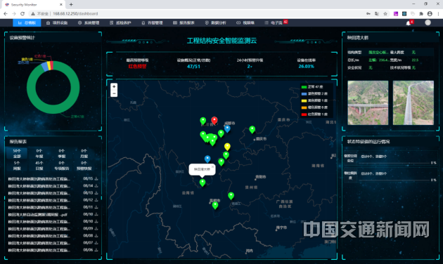 圖2 公路工程結(jié)構(gòu)安全風(fēng)險(xiǎn)集群化智能監(jiān)測(cè)云——總情信息屏。