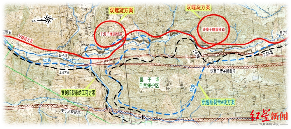 拖烏山至石棉這段50余公里長的路,堪稱“魔鬼中的魔鬼路段”,幾乎全是長大縱坡,在亞洲的高速公路中也屬罕見。為了克服地形的不利條件,在先后10多種方案中,“雙螺旋隧道”脫穎而出,至今也是獨(dú)一無二的設(shè)計(jì)。隧道兩次跨越同一個(gè)地震帶,設(shè)置了避險(xiǎn)車道、緊急停車帶、強(qiáng)制休息區(qū),解決駕駛安全顧慮。