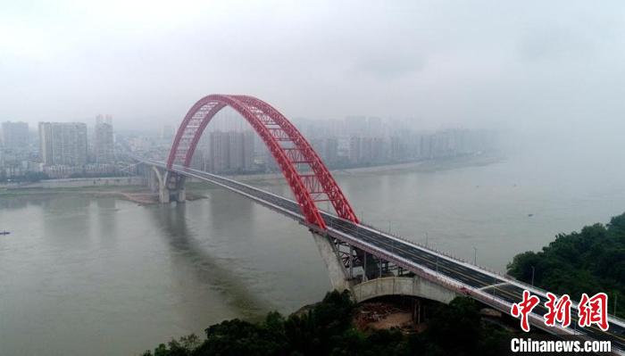 25日清晨,一場雨后的長江邊有點冷,站在合江縣符陽街道長江邊的棗林橋碼頭遠眺,大橋宛如一只燕子正展翅飛越長江,“飛燕式”也由此而來。橋下,不時有貨船滿載貨物駛過江面?!俺舜^江的日子已不復存在,大橋?qū)㈤_啟我們新的幸福生活,也是我們的‘幸福橋’哦!”符陽街道村民田清柏站在江邊望著大橋稱。