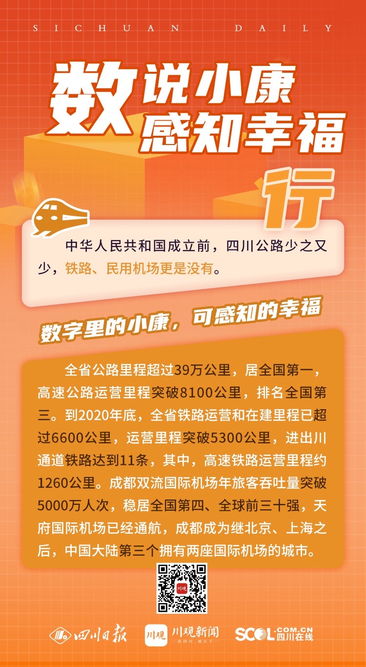 千年夢想,一朝夢圓。 7月1日,在慶祝中國共產(chǎn)黨成立100周年大會上,習(xí)近平總書記莊嚴(yán)宣告:“經(jīng)過全黨全國各族人民持續(xù)奮斗,我們實現(xiàn)了第一個百年奮斗目標(biāo),在中華大地上全面建成了小康社會,歷史性地解決了絕對貧困問題,正在意氣風(fēng)發(fā)向著全面建成社會主義現(xiàn)代化強(qiáng)國的第二個百年奮斗目標(biāo)邁進(jìn)?!?/span> 全面建成小康社會,巴蜀大地與有榮焉。小康是什么?每個人心中有不同的答案。它可能是滿倉的糧食、安全的住房,也可能是便利的出行、美麗的生態(tài),亦或是老有所養(yǎng)、幼有所育。小康的模樣,在今昔對比中尤為明顯,在一個個數(shù)據(jù)里直觀可見。 四川日報全媒體推出“‘?dāng)?shù)’說小康 感知幸?!毕盗袌蟮溃ㄟ^“吃穿住行用”等領(lǐng)域的數(shù)據(jù)對比,感知人民的幸福,刻畫小康的模樣。敬請垂注。 數(shù)據(jù)點(diǎn)擊