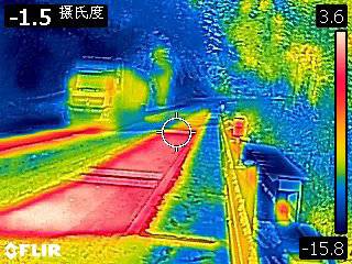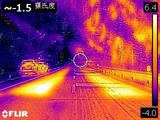 當晚7點半,大雪如期而下,熱管埋設(shè)區(qū)域因溫度高,冰雪無法堆積,其他位置和普通路段均存在較厚積雪,大貨車等各種車輛可從熱管布設(shè)區(qū)域輕松能行。系統(tǒng)運行達到了預期效果,極大提高了道路冬季安全通行水平。