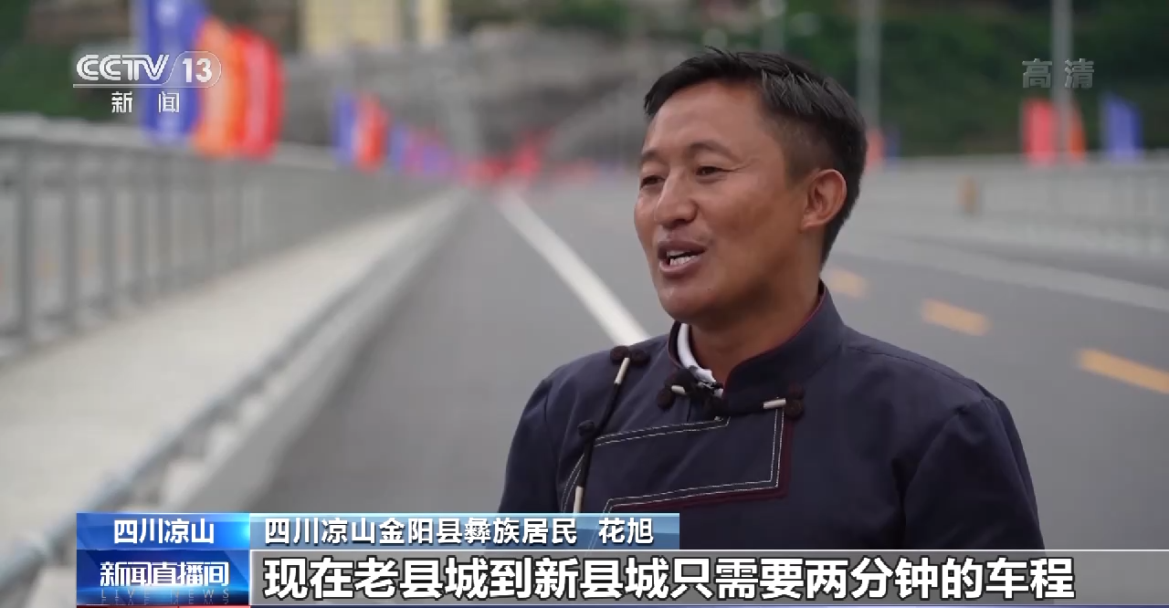 四川涼山金陽縣彝族居民 花旭:我在這里生活了30多年,見證了這座橋從無到有,很高興也很激動。現(xiàn)在老縣城到新縣城只需要兩分鐘的車程,再也不用像以前那樣,走很多彎彎曲曲的山路,繞來繞去。