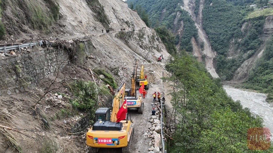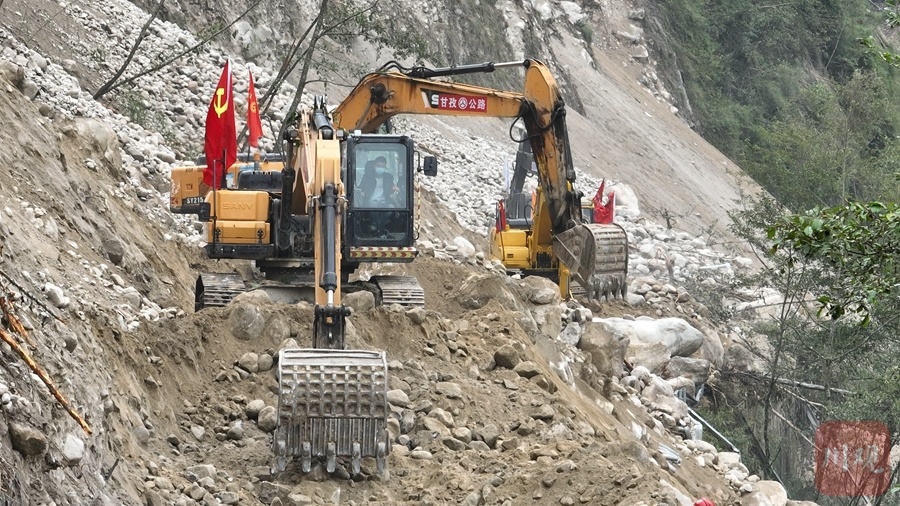 9月8日11時許,進入海螺溝景區(qū)主干道X019線上,搶通還在持續(xù)?!敖裉煳覀冊鐾读藱C械,力爭晚上搶通至青崗坪大橋路段?!爆F(xiàn)場指揮的甘孜州公路建設服務中心工程隊隊長澤郎平措說。