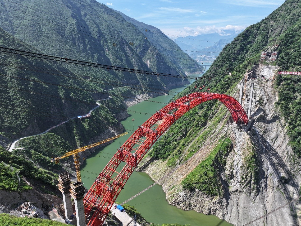 2024年7月16日上午,由公司設(shè)計(jì)的沿江高速西蘇角河大橋主拱順利合龍,標(biāo)志著項(xiàng)目建設(shè)取得重大進(jìn)展,為未來(lái)橋梁的竣工奠定了堅(jiān)實(shí)的基礎(chǔ)。沿江高速沿線位于典型的深陡峽谷區(qū),面對(duì)線路多次跨越多V型和U型峽谷的深陡峽谷,我司共設(shè)計(jì)六座鋼管混凝土拱橋,其中西蘇角河大橋跨徑最大,凈跨徑達(dá)350m。