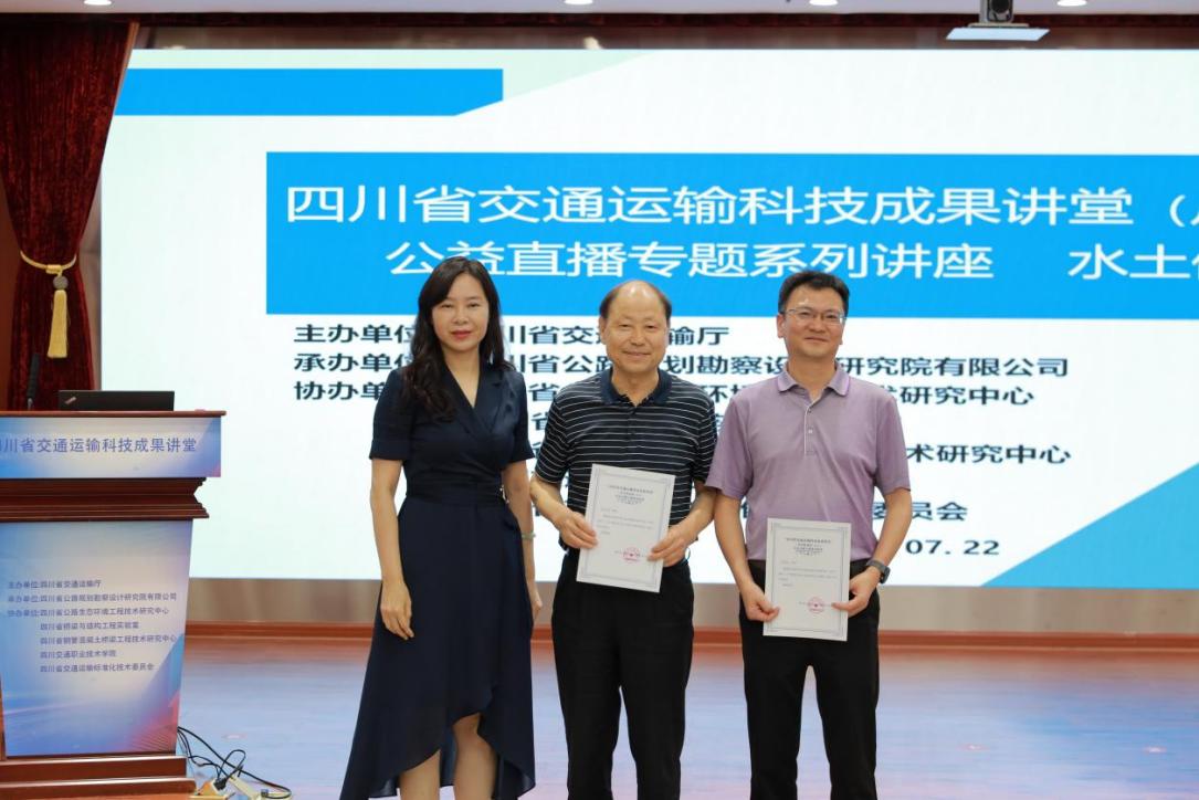 省交通運輸廳副廳長李紅到會致辭并為講座專家頒發(fā)授課證書。李紅副廳長強調,四川交通建設面臨技術復雜、資源匱乏、地災頻發(fā)、氣候惡劣、生態(tài)脆弱等難題,作為長江黃河上游重要省區(qū),我省肩負著全國生態(tài)文明建設的重大使命,在交通強國強省的新征程中,面臨更大的挑戰(zhàn),迫切需要開展水土保持領域的科技攻關和規(guī)范管理工作。李紅副廳長強調,要求廣大交通建設者和科技工作者要深入學習貫徹落實習近平總書記關于交通運輸和科技創(chuàng)新工作的重要論述,不斷增強以科技創(chuàng)新驅動加快建設交通強國強省的責任感、使命感、緊迫感,樹立終身學習理念,以交流促發(fā)展,積極參加交通科技成果講堂。