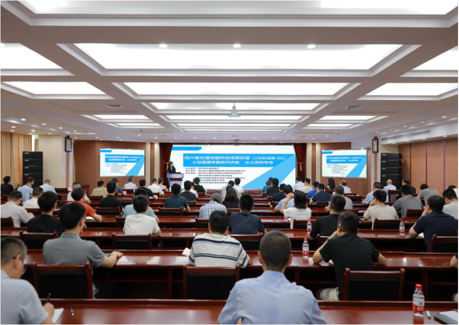 在全省交通運輸行業(yè)深入學習貫徹黨的二十屆三中全會精神,因地制宜發(fā)展新質生產力之際,7月22日,由四川省交通運輸廳主辦,公司承辦、四川省公路生態(tài)環(huán)境工程技術研究中心(以下簡稱生態(tài)環(huán)境工程中心)等單位協辦的四川省交通運輸科技成果講堂(川交科成果-022)公益直播專題系列講座(水土保持專場)在廳四樓大會議室成功舉辦。省交通運輸廳副廳長李紅、建管處處長趙剛、科信處處長鐘映梅、規(guī)劃處副處長張靜,蜀道集團安環(huán)部、公路建管部等部門及川高公司、成渝公司、蜀高公司等建設單位,公司總工辦、科信部、環(huán)境分院等生產部門相關領導及技術人員100余人在現場參加講座。交通科技成果講堂開場環(huán)節(jié)由公司總工程師牟廷敏主持,講座環(huán)節(jié)由生態(tài)環(huán)境工程中心主持。