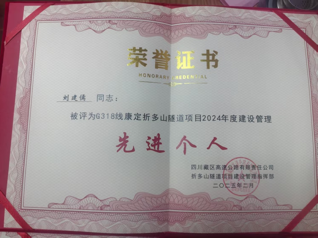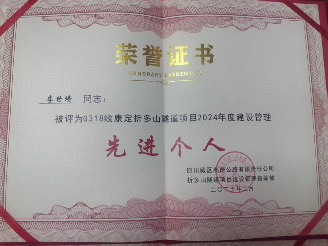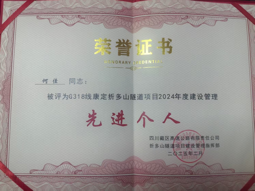 近日,四川藏區(qū)高速公路有限責(zé)任公司國(guó)道318線康定折多山隧道項(xiàng)目建設(shè)管理指揮部發(fā)來(lái)表?yè)P(yáng)信,對(duì)我公司后期服務(wù)組同志們積極、專(zhuān)業(yè)、有效的設(shè)計(jì)及后期服務(wù)工作非常滿(mǎn)意,特此表?yè)P(yáng)以感謝我公司對(duì)國(guó)道318線康定折多山隧道公路工程建設(shè)的大力支持。對(duì)我公司折多山隧道項(xiàng)目后期服務(wù)組授予“2024年度建設(shè)管理先進(jìn)集體”榮譽(yù)稱(chēng)號(hào),對(duì)李世琦、何佳、劉建儒等同志授予“2024年度建設(shè)管理先進(jìn)個(gè)人”榮譽(yù)稱(chēng)號(hào)。