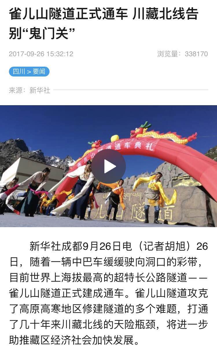 四川發(fā)布客戶端標(biāo)題:雀兒山隧道通車了!“川藏第一險(xiǎn)”從此變通途(9月26日)