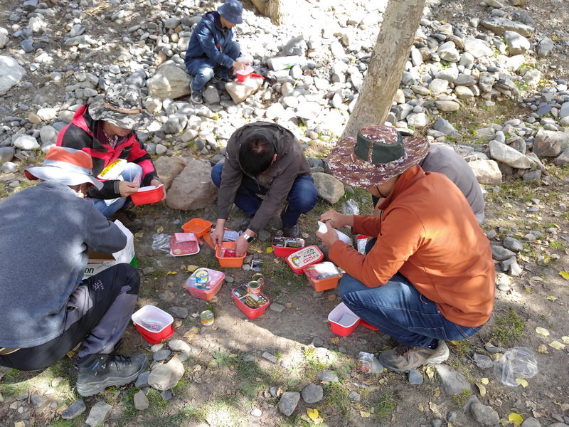 2017年10月,G215線石渠縣洛須鎮(zhèn)至青海玉樹(shù)段外業(yè)勘察時(shí)用餐,該項(xiàng)目位于川、青、藏結(jié)合部,是四川通往青海玉樹(shù)地區(qū)的第二通道。