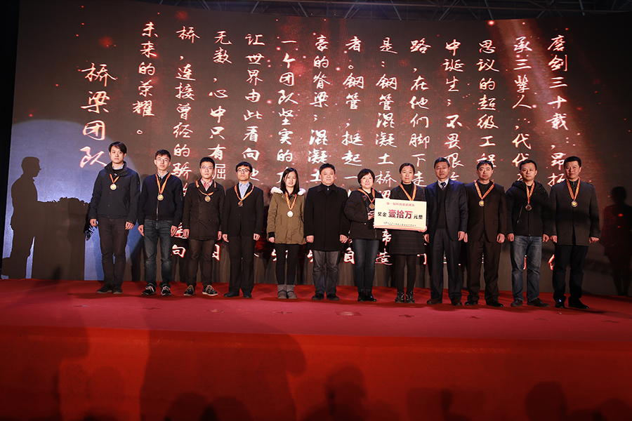 最后,會議隆重頒發(fā)了院第一屆科技領軍人物、科技創(chuàng)新新秀、科技創(chuàng)客及科技創(chuàng)新團隊獎項。頒獎通過播放人物視頻、宣讀頒獎詞等為大家呈現(xiàn)了一場視聽盛宴:領軍人物一個個鮮活的形象呈現(xiàn)在視頻中,有一副瘦弱的肩膀,卻擔起了鋼管混凝土橋梁發(fā)展重任的彩虹姐姐范碧琨;有傾注地質(zhì)研究,一雙腿丈量西部地圖的地質(zhì)王者程強;有20年無怨無悔堅守,把生命的黃金歲月奉獻給科技研發(fā)的數(shù)字先驅(qū)林國進;有憑借專業(yè)敢為人先,創(chuàng)造使用新結(jié)構(gòu)、新工藝、新材料的路面達人張蓉;有讓交通出行更加便捷、高效,不知疲憊的工程智者蔣貴川。而科技創(chuàng)新新秀和科技創(chuàng)客也“各路英雄各顯神通”,將橋梁好兄弟、隧道行者、地質(zhì)雙雄、跨界程序員等9名科技創(chuàng)新新秀的創(chuàng)新成果和13名科技創(chuàng)客的發(fā)明創(chuàng)新在視頻里生動表現(xiàn)??萍紕?chuàng)新團隊更是將本次大會氣氛帶向了高潮,有磨劍三十載,代代匠心,成就了讓世界由此看向他們的橋梁團隊;有常年奔波在藏區(qū)山路,讓隧道有呼吸、能供氧、會發(fā)電、還保暖的隧道團隊;有躬身黃土人不識,笑看天路臥云端的地形地質(zhì)地貌把脈者地質(zhì)團隊;有翻手之間,路面再生換新顏,讓道路會呼吸、會發(fā)光、會歌唱的路面團隊;還有點開發(fā)展之機,畫出通達之路,描繪交通藍圖的規(guī)劃團隊。通過視頻火熱的感染力,為大家傳遞呈現(xiàn)了一個個攻堅克難、砥礪奮進、團結(jié)拼搏的團隊。廳機關部門領導、院領導為獲獎人員和團隊頒獎,全場響起一陣陣熱烈的掌聲和喝彩聲。
