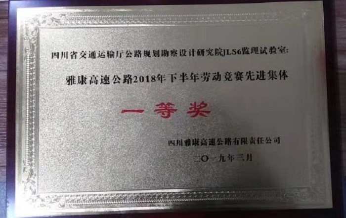 我院雅康高速JLS6監(jiān)理試驗室受業(yè)主表彰