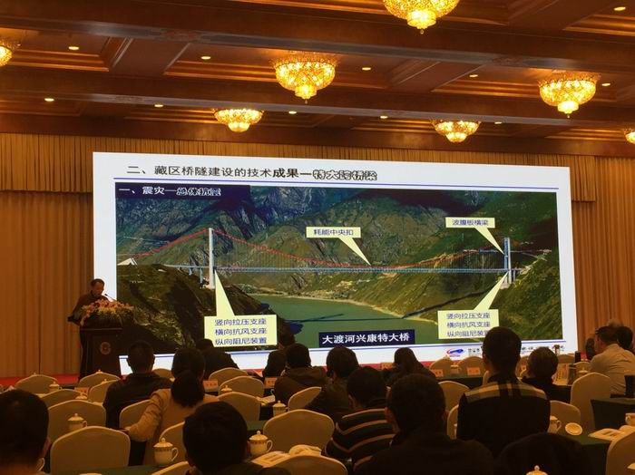 11月15日,研討會在成都金牛賓館開展了三場主題報告會,美國國家工程院院士、中國工程院外籍院士鄧文中,全國工程勘察設計大師、中國交通建設股份有限公司總工程師張喜剛等業(yè)內知名專家學者家圍繞橋梁技術創(chuàng)新、全國橋隧技術創(chuàng)新、藏區(qū)高速橋隧技術創(chuàng)新做了近30場主題報告。我院總工程師牟廷敏在藏區(qū)高速公路橋隧技術創(chuàng)新與成果分享論壇上做了《藏區(qū)高速公路橋隧抗災減震技術開發(fā)》報告,以大渡河興康特大橋、汶川克枯大橋以及二郎山隧道為代表,系統(tǒng)介紹了橋隧抗災減震技術開發(fā)成果應用藏區(qū)高速公路特殊橋隧建設情況,得到全國同行高度認可。
