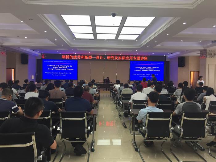 為進一步提升橋梁技術(shù)人員專業(yè)技能,拓展鋼橋疲勞和斷裂等相關(guān)專業(yè)知識,提升設(shè)計水平,8月2日-3日,我院邀請美國新澤西州交通部橋梁及結(jié)構(gòu)首席工程師程小華博士來院開展技術(shù)交流,并做“鋼橋的疲勞和斷裂─設(shè)計、研究及實際應(yīng)用”專題講座。程博士通過大量的項目案例和圖片展示,系統(tǒng)介紹了美國鋼橋建造歷史,通過講解美國歷史上的塌橋事件,分析了鋼橋的疲勞和斷裂問題。我院技術(shù)人員圍繞講座主題與程博士進行了現(xiàn)場問答和互動交流。