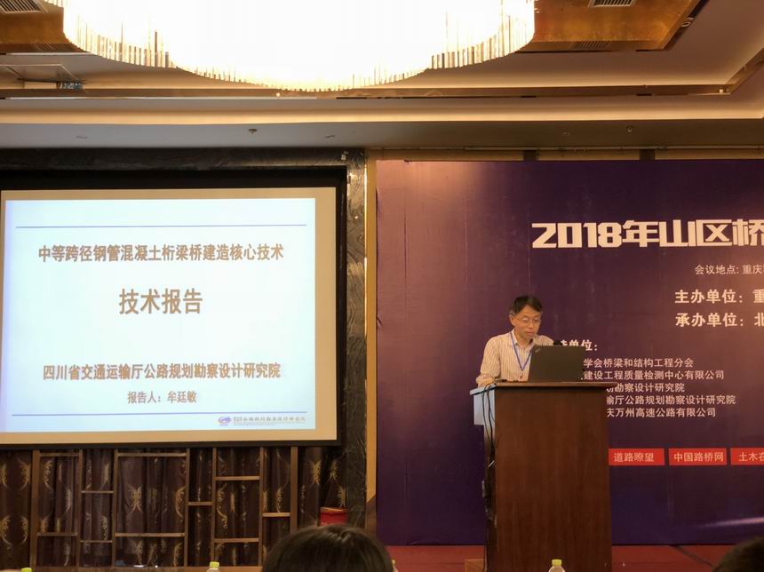7月13日至15日,由重慶交通大學(xué)和橋梁工程與技術(shù)網(wǎng)聯(lián)合主辦的“2018年山區(qū)橋梁建設(shè)與管養(yǎng)技術(shù)大會”在重慶召開。我院作為會議支持單位,由院總工程師牟廷敏帶隊(duì)共4人參加會議,考察了橋梁建設(shè)與管養(yǎng)工地,就山區(qū)復(fù)雜條件橋梁建設(shè)與養(yǎng)護(hù)技術(shù)進(jìn)行了充分交流。會上,我院總工程師牟廷敏作了主題為“山區(qū)中等跨度鋼管混凝土桁梁橋建設(shè)核心技術(shù)”專題報(bào)告,介紹了山區(qū)復(fù)雜條件中等跨度橋梁現(xiàn)狀、需要攻克的技術(shù)難題、核心技術(shù)和技術(shù)成果推廣應(yīng)用前景等內(nèi)容,反響強(qiáng)烈,受到主辦方的高度評價(jià)。