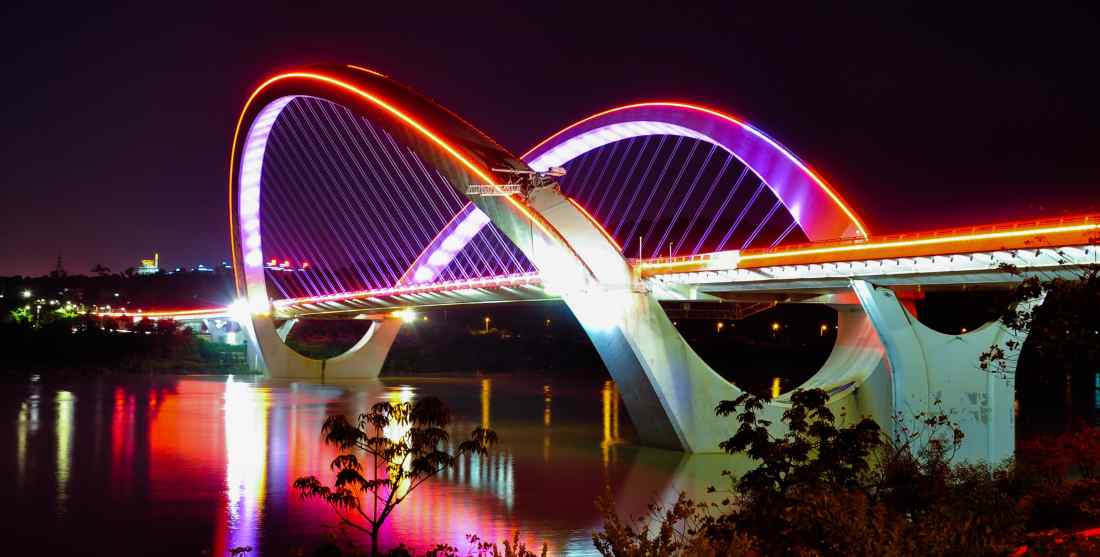 主橋橋跨300米,攻克了“大跨徑、曲線梁、非對稱、外傾拱橋”架設(shè)難題,已成為南寧標志性建筑。