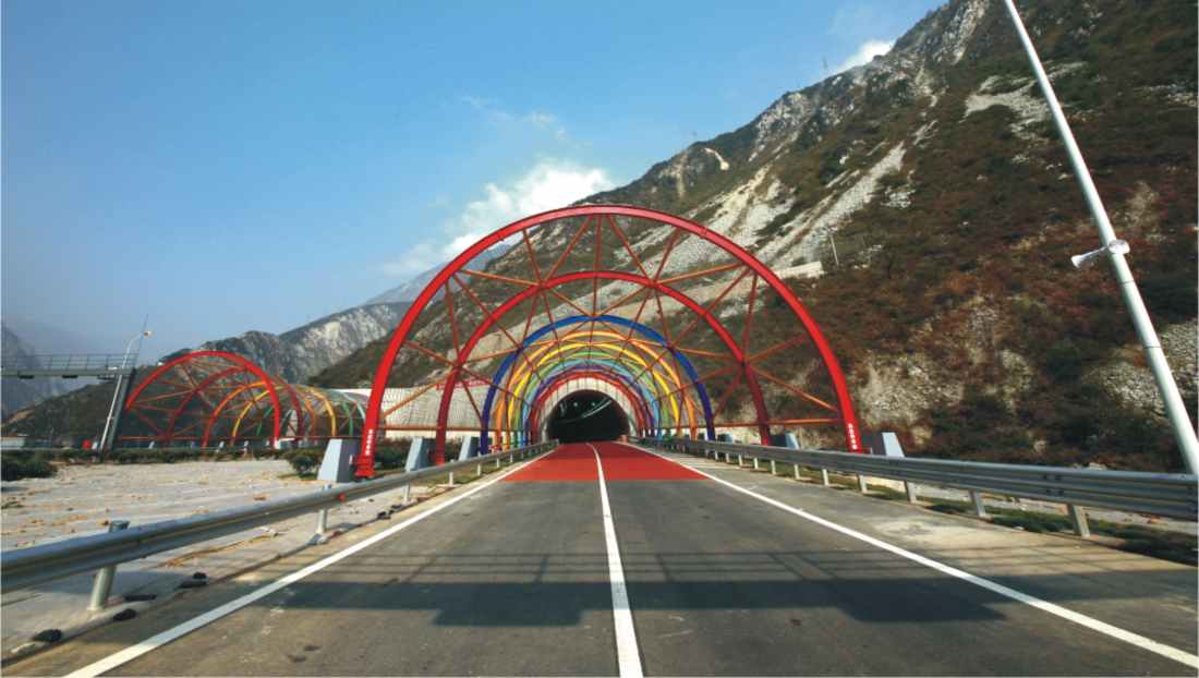 共8座隧道,其中特長(zhǎng)隧道5座,2013年建成, 地處5·12汶川大地震區(qū),受龍門山中央斷裂帶影響