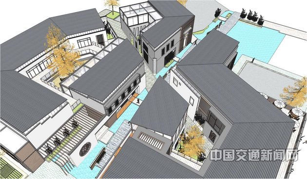 “聚落”元素服務(wù)區(qū)的特點(diǎn)在于不拘泥于傳統(tǒng)的服務(wù)區(qū)建筑,以水系作為停車場與服務(wù)區(qū)綜合體的分隔,使空間及整個總體規(guī)劃生動有趣。