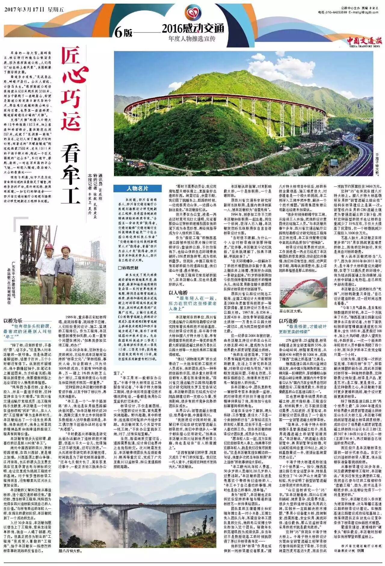 按:3月17日,《中國交通報》及其微信平臺訂閱號《中交報在路上》,分別專題報道了我院副總工程師牟廷敏典型事跡。請大家積極關(guān)注。