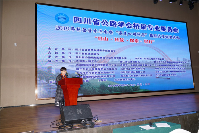 10月26—27日,由四川省公路學(xué)會橋梁專業(yè)委員會主辦(以下簡稱橋?qū)?、我公司與中交第二公路工程局有限公司聯(lián)合承辦、多家單位協(xié)辦的2019年橋梁學(xué)術(shù)年會暨“最美四川橋梁”攝影大賽頒獎典禮在瀘州合江順利召開。會議邀請到了全國工程勘察大師謝邦珠、西南交通大學(xué)范文理教授等多位橋梁專家,吸引了來自四川、北京、江蘇、浙江、深圳、青海、重慶、廣西、山西等330余名業(yè)內(nèi)人士共同學(xué)習(xí)和探討。由四川省公路學(xué)會秘書長晏大蓉致歡迎辭。