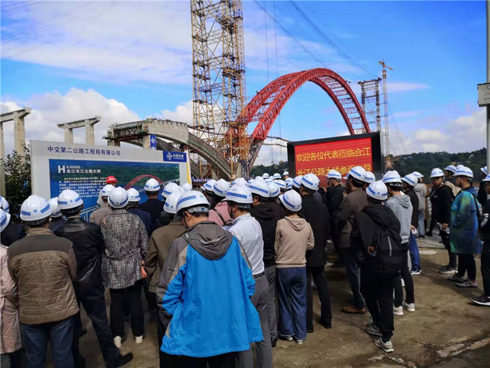 學(xué)術(shù)報告會后,參會代表參觀了正在建設(shè)中的合江長江公路大橋以及已經(jīng)建成通車的合江長江一橋(波司登大橋),橋梁技術(shù)人員現(xiàn)場講解橋梁建設(shè)關(guān)鍵技術(shù),加深了參會代表對鋼管混凝土拱橋相關(guān)技術(shù)的理解,讓各位參會專家、學(xué)者利用橋?qū)@個學(xué)術(shù)平臺深入溝通,加強了專業(yè)技術(shù)資源共享,推動了橋梁建設(shè)技術(shù)水平不斷提升。