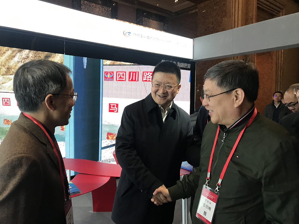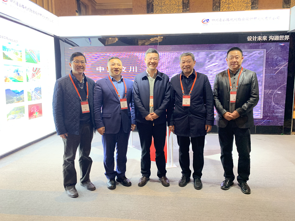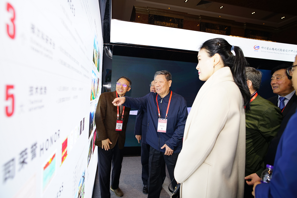 部、廳領(lǐng)導(dǎo)和業(yè)內(nèi)專家學(xué)者、業(yè)主代表在四川公路設(shè)計(jì)院展位參觀交流