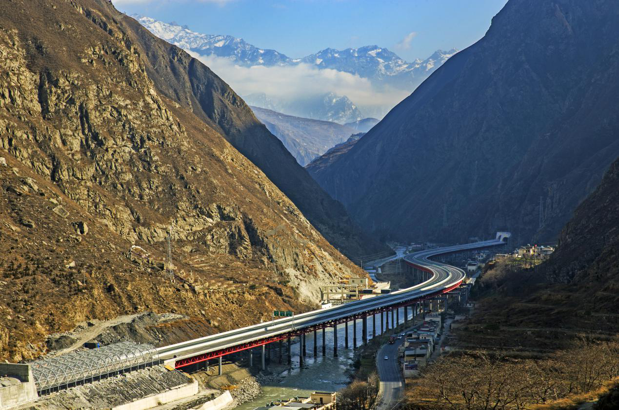 雅康高速瀘定大渡河大橋橫跨大渡河,是川藏公路上的“超級工程”,是最高地震烈度最大跨度懸索橋,被譽(yù)為“川藏第一橋”,混凝土澆筑量比世界第三的廣州塔多了近一倍;使用的鋼材足夠建設(shè)1.5個(gè)鳥巢;使用的索股和纏線長達(dá)6萬公里,可繞地球1.5圈,在第36屆國際橋梁大會(huì)上,獲得“古斯塔夫·林德撒爾(Gustav Lindenthal)”金獎(jiǎng),大會(huì)執(zhí)行委員會(huì)認(rèn)為,瀘定大渡河興康大橋在技術(shù)和材料創(chuàng)新、美學(xué)價(jià)值、環(huán)境保護(hù)以及社會(huì)效應(yīng)等方面取得了杰出成就。