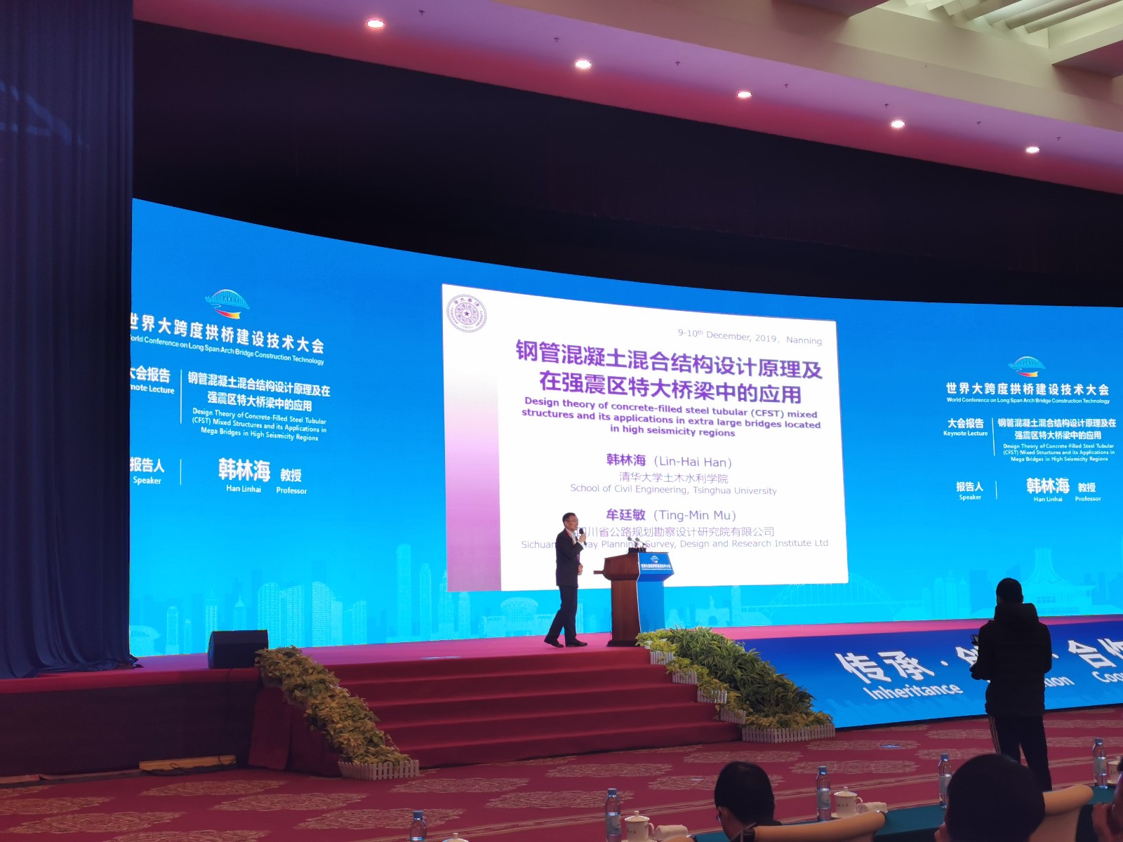 12月9日至10日,由中國(guó)工程院土木、水利與建筑工程學(xué)部、中國(guó)土木工程學(xué)會(huì)橋梁及結(jié)構(gòu)工程分會(huì)、中國(guó)公路學(xué)會(huì)橋梁和結(jié)構(gòu)工程分會(huì)、國(guó)際橋梁與結(jié)構(gòu)工程分會(huì)(IABSE)、世界拱橋大會(huì)永久性學(xué)術(shù)委員會(huì)(PSC-iCAB)等單位聯(lián)合主辦的“世界大跨度拱橋建設(shè)技術(shù)大會(huì)”在廣西南寧召開(kāi)。我公司作為會(huì)議承辦單位之一,由牟廷敏總工程師帶領(lǐng)相關(guān)專(zhuān)業(yè)技術(shù)人員共6人參會(huì)。本次會(huì)議的目的是探索拱橋領(lǐng)域的前沿科學(xué)問(wèn)題和工程技術(shù)問(wèn)題,會(huì)議議題涵蓋了拱橋設(shè)計(jì)理論、施工技術(shù)、檢測(cè)方法、維護(hù)加固、新型材料等熱門(mén)話(huà)題,共計(jì)有18場(chǎng)由國(guó)際知名橋梁專(zhuān)家、中國(guó)工程院院士、長(zhǎng)江學(xué)者、勘察設(shè)計(jì)大師等的學(xué)術(shù)報(bào)告和拱橋高峰訪談。
