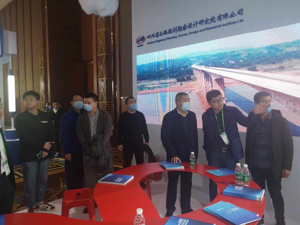 公司展位通過視頻播放、無人機等實物展示、VR體驗等融合光聲影的精心布設,全方位展現(xiàn)了公司在數(shù)字化領域的主要業(yè)績和科技成果,吸引到交通運輸部總工程師、公路局局長汪洋,中國公路學會副理事長兼秘書長劉文杰,交通運輸部科技司一級巡視員洪曉楓,四川省交通運輸廳二級巡視員寇小兵,中國公路學會副秘書長喬云以及眾多業(yè)主、科研單位相關領導蒞臨公司展位參觀指導。