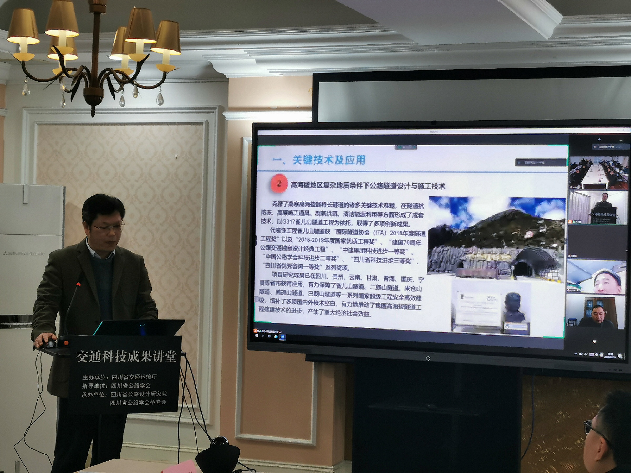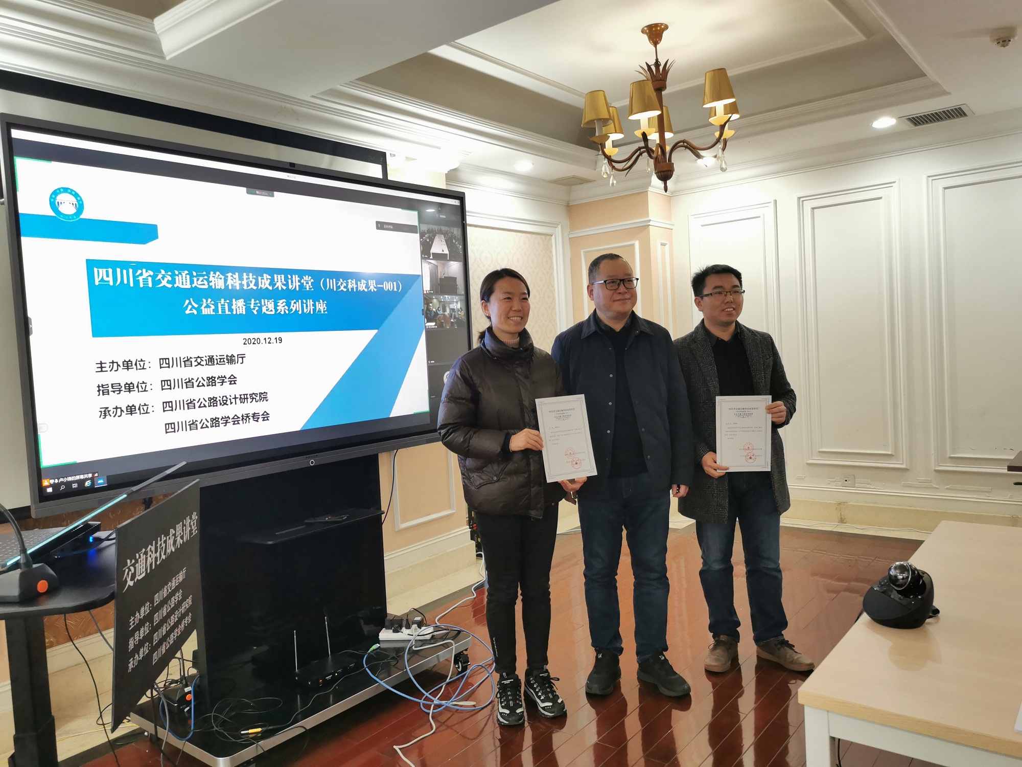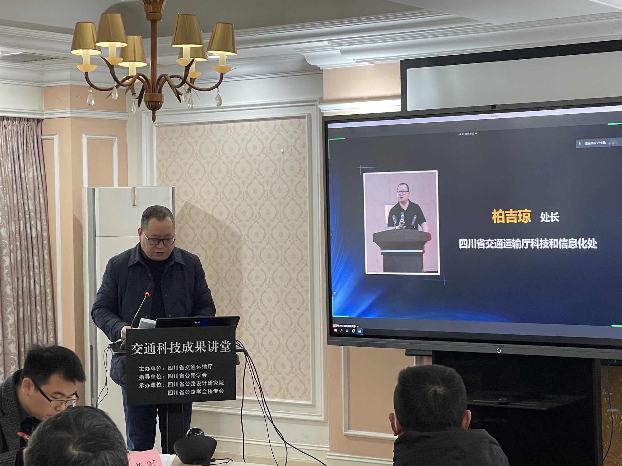 12月19日上午,由四川省交通運輸廳主辦、我公司和橋專會共同承辦的四川省交通運輸科技成果講堂(川交科成果-001)公益直播專題系列講座在我公司成功召開。本次會議采用線上直播和小規(guī)?,F(xiàn)場會議方式同時進行,現(xiàn)場會議到會指導的領導有省交通運輸廳科技和信息化處處長柏吉瓊,四川省公路學會理事長李全文,公司黨委書記、董事長羅玉宏。本次交通運輸科技成果講堂上網(wǎng)點數(shù)超過160個,參加總人數(shù)約300人。