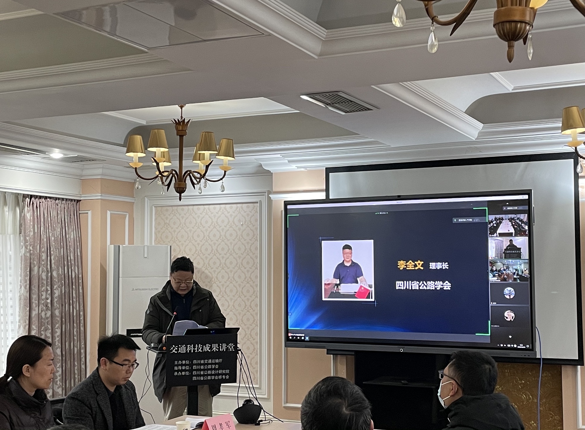 公司黨委書記、董事長羅玉宏致辭,表示公司高度重視交通科技成果講堂組織工作,充分借助省公路學會和橋專會交流平臺,利用交通科技成果講堂,做好省交通運輸廳科技成果宣傳發(fā)布活動,面向行業(yè)需求,加快科技成果轉化,集中在交通科技成果講堂進行展示宣傳、發(fā)布推介,以助推四川交通強省建設和行業(yè)技術進步。