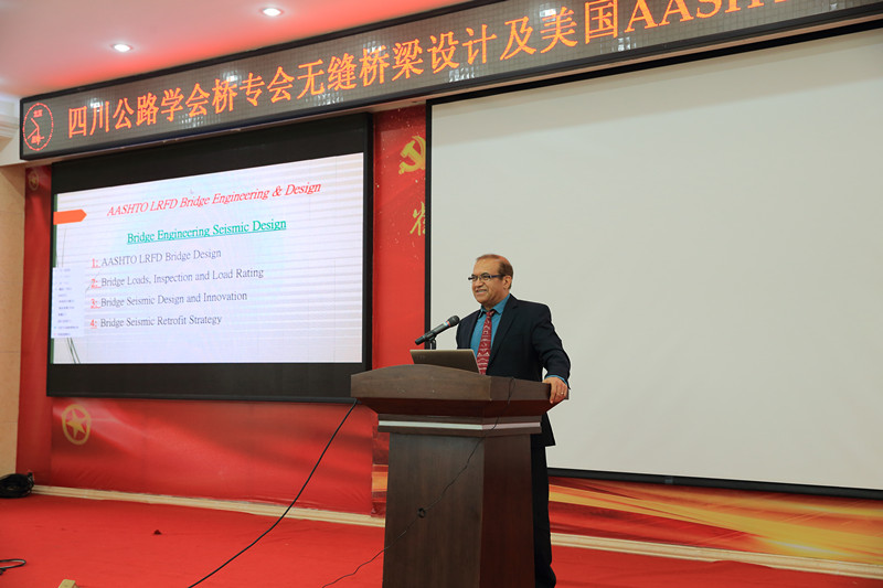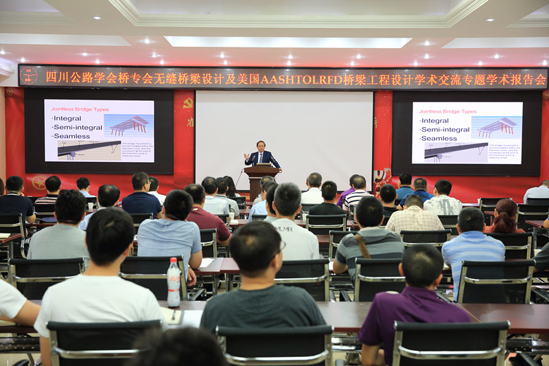 7月22日,由四川省公路學會橋梁專業(yè)委員會主辦、我司承辦的“無縫橋梁設計及美國AASHTO LRFD 橋梁工程設計學術交流”專題學術報告會在2號樓6樓會議室順利召開,會議邀請到國際橋梁抗震協(xié)會主席、國際無縫橋協(xié)會執(zhí)行主席顏文暉博士和美國華盛頓州交通廳橋梁設計總工程師Bijan Khaleghi博士一行四人來進行學術交流。本次學術報告會吸引了百余名專家、學者共同學習和探討。