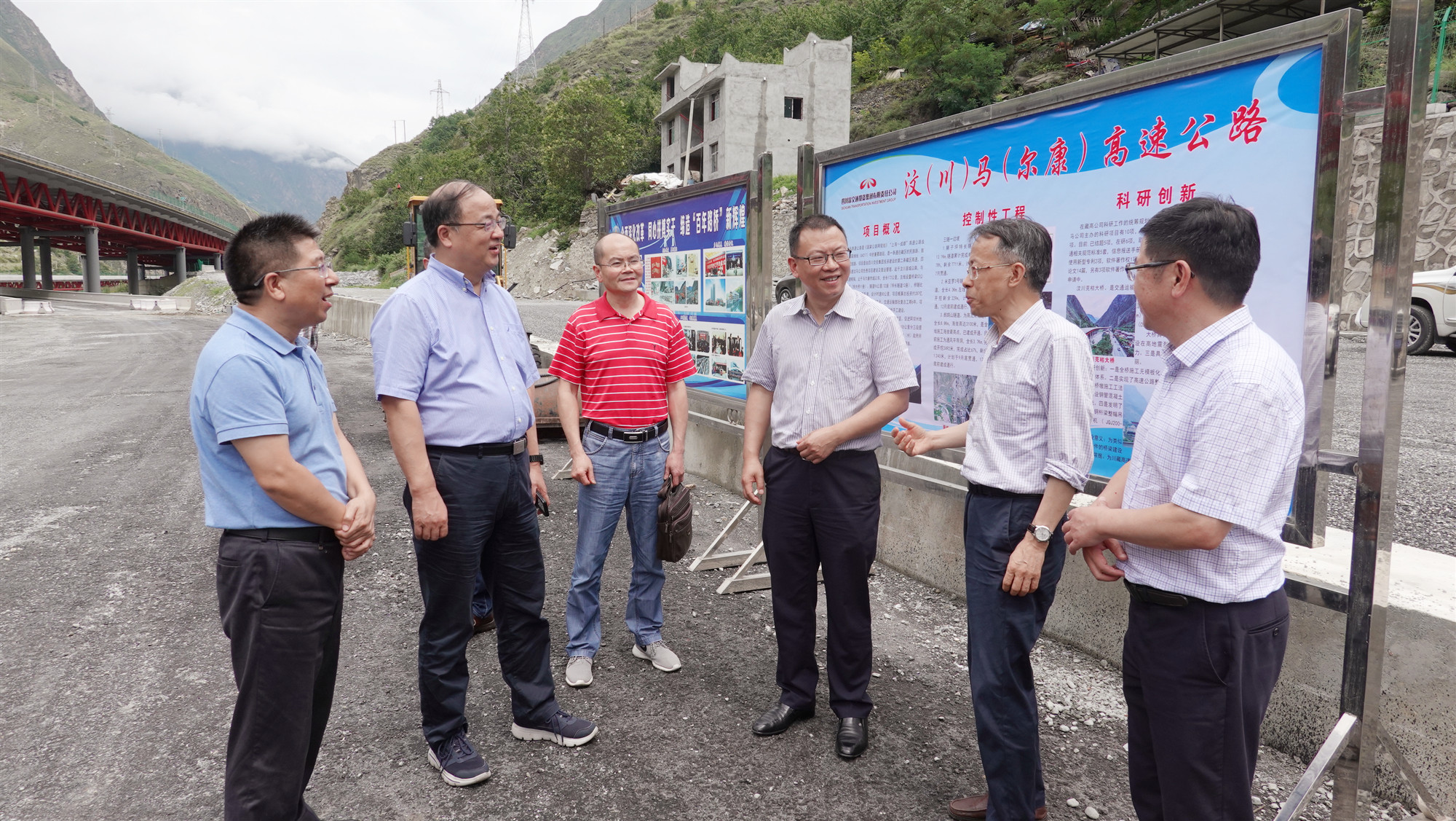 7月19日,交通運輸部科技司調(diào)研組一行在四川省交通運輸廳相關(guān)負責人的陪同下赴汶馬高速汶川克枯大橋開展科研調(diào)研工作,我司參加項目科研工作匯報。
